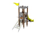 Věž, skluzavka, 2x bariéra z HDPE, šikmý síťový výlez, vlajka, cimbuří z HDPE. Více informací