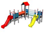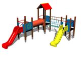 3x věž, 2x skluzavka, stříška ve tvaru "A", 3x bariéra z HDPE, kolmý žebřík, lanový most mezi věžemi, prolézací tunel mezi věžemi, šikmý síťový výlez, šikmý výlez s nášlapy a kovovými madly. Více informací