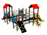 4x věž, 2x skluzavka, 2x stříška ve tvaru "A", 3x bariéra z HDPE, kolmý žebřík, šikmý výlez s nášlapy a kovovými madly, šikmý výlez s lanem a nášlapy z HDPE, 2x lanový most mezi věžemi, 2x most s lanovým zábradlím mezi věžemi. Více informací