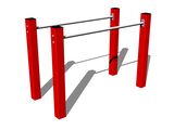 Bradla - celokovová, výška pádu 1 m, jako dopadová plocha postačí trávník. Na výběr jsou tři barevné varianty konstrukce - hnědá, červená a modrá. Více informací