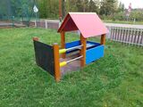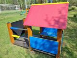 Domeček - celokovový, zastřešený domeček s bočnicemi, lavicemi, stolkem, podlahou, kreslicí tabulí a počítadlem. Na výběr jsou dvě barevné varianty konstrukce hnědá a stříbrná. Možnost celoplastového (HDPE) provedení za příplatek - cena na dotaz. Více informací