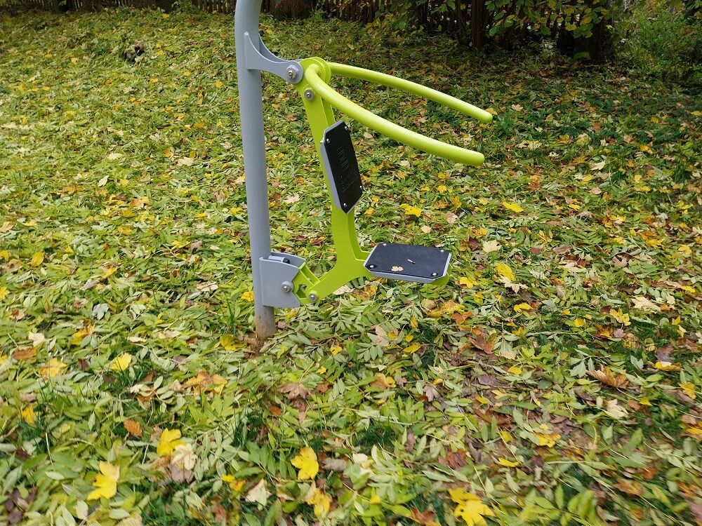 Sedák a opěradlo jsou z hliníku, který je potažen deskou z polyethylenu HDPE (vysokotlaký, celoprobarvený polyetylen, který se vyznačuje vysokou barevnou stálostí, odolnosti proti UV záření). Rukojeti jsou z práškově lakovaných ocelových trubek. Nosný sloup je vyrobený z ocelové trubky, který je dole zakončený montážní přírubou. Rám sedáku a běhoun jsou z práškově lakovaného plechu. Na pohyblivá spojení jsou použitá valivá ložiska. Otvory jsou na koncích těsněny ocelovými prvky. Veškerý spojovací materiál je nerezový.