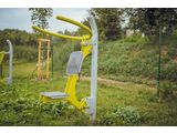 Sedák a opěradlo jsou z hliníku, který je potažen deskou z polyethylenu HDPE (vysokotlaký, celoprobarvený polyetylen, který se vyznačuje vysokou barevnou stálostí, odolnosti proti UV záření). Rukojeti jsou z práškově lakovaných ocelových trubek. Nosný sloup je vyrobený z ocelové trubky, který je dole zakončený montážní přírubou. Rám sedáku a běhoun jsou z práškově lakovaného plechu. Na pohyblivá spojení jsou použitá valivá ložiska. Otvory jsou na koncích těsněny ocelovými prvky. Veškerý spojovací materiál je nerezový.