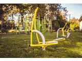 Funkce: Rozvíjí dolní končetiny, svaly stehen a lýtek, společně s bederními a břišními svaly. Zlepšuje vytrvalost srdce a funkci cév a koordinaci celého těla. Pokyny: Postavte se chodidly na plošinky a pevně se chytněte držadel. Pohybujte současně rukama a nohama, jako byste šlapali na kole. Záda držte vzpřímená. Více informací