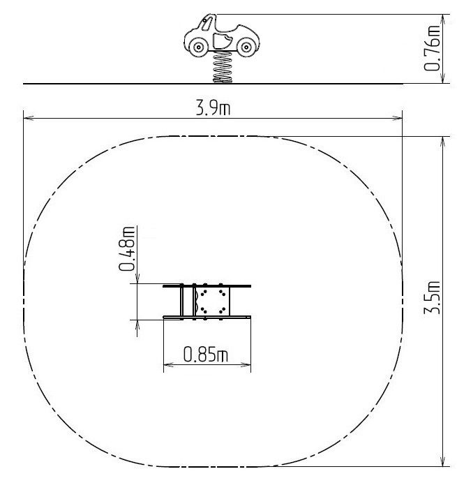 Oblíbené dětské pružinové houpadlo - AUTÍČKO. Výška pádu do 1 m, jako dopadová plocha postačí trávník. Více informací