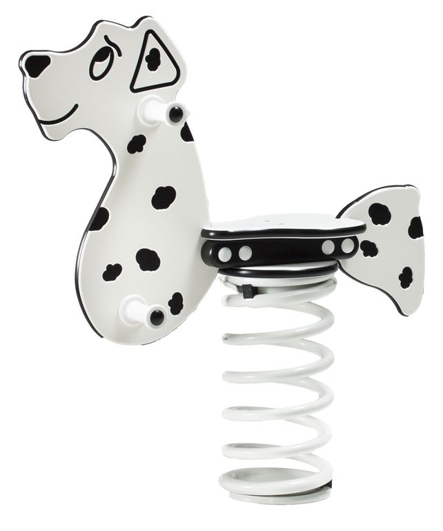 Oblíbené dětské pružinové houpadlo - DALMATIN. Výška pádu do 1 m, jako dopadová plocha postačí trávník. Více informací