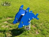 Houpadlo na pružině - DELFÍN. Výška pádu do 1 m, jako dopadová plocha postačí trávník. Více informací