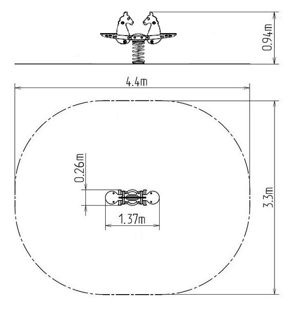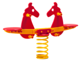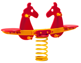 Oblíbené dětské pružinové houpadlo - DUO KONÍK. Výška pádu do 1 m, jako dopadová plocha postačí trávník. Více informací