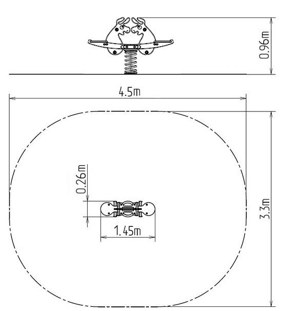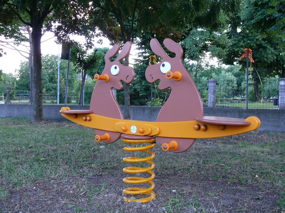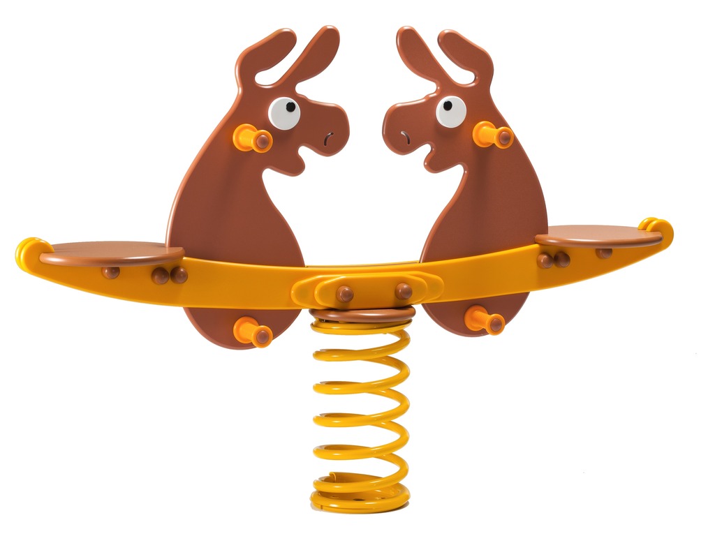Oblíbené dětské pružinové houpadlo - DUO OSLÍK. Výška pádu do 1 m, jako dopadová plocha postačí trávník. Více informací