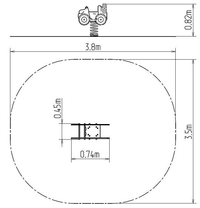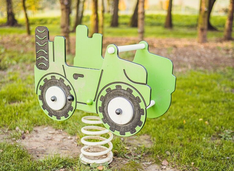 Oblíbené dětské pružinové houpadlo - DŽÍP. Výška pádu do 1 m, jako dopadová plocha postačí trávník. Více informací