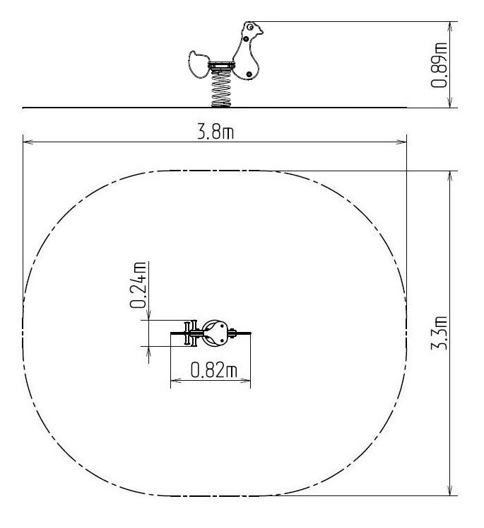 Oblíbené dětské pružinové houpadlo - HUSA. Výška pádu do 1 m, jako dopadová plocha postačí trávník. Více informací
