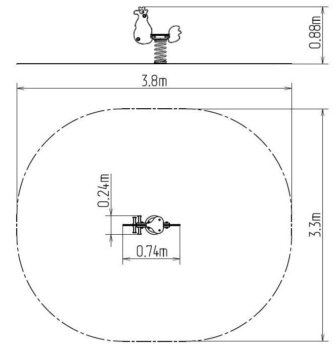 Oblíbené dětské pružinové houpadlo - KOHOUT. Výška pádu do 1 m, jako dopadová plocha postačí trávník. Více informací