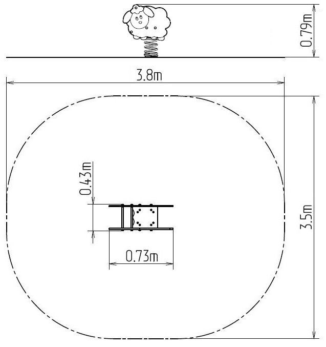 Oblíbené dětské pružinové houpadlo - OVCE. Výška pádu do 1 m, jako dopadová plocha postačí trávník. Více informací