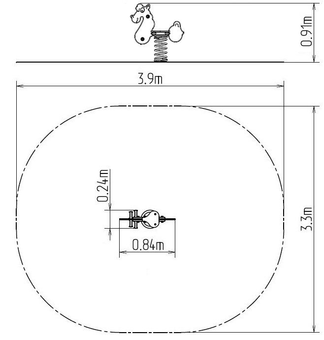 Oblíbené dětské pružinové houpadlo - PONÍK. Výška pádu do 1 m, jako dopadová plocha postačí trávník. Více informací