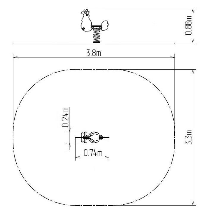 Oblíbené dětské pružinové houpadlo - SLEPICE. Výška pádu do 1 m, jako dopadová plocha postačí trávník. Více informací