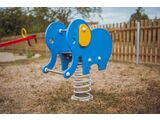 Houpadlo na pružině - SLON. Výška pádu do 1 m, jako dopadová plocha postačí trávník. V nabídce je modrá a modro-žlutá varianta. Více informací