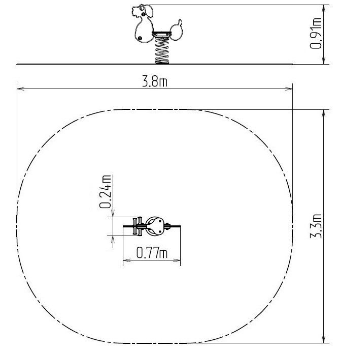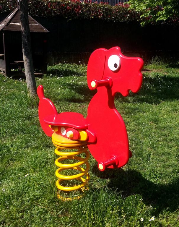 Oblíbené dětské pružinové houpadlo - ŠTĚNĚ. Výška pádu do 1 m, jako dopadová plocha postačí trávník. Více informací