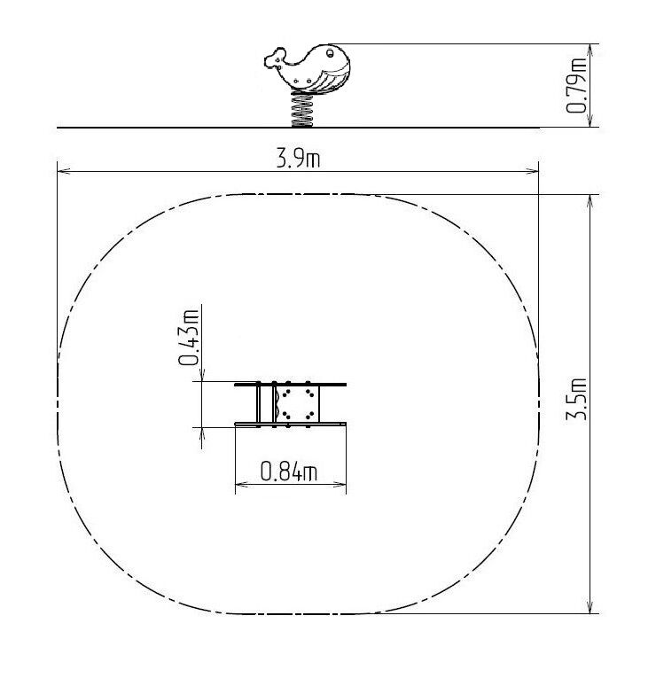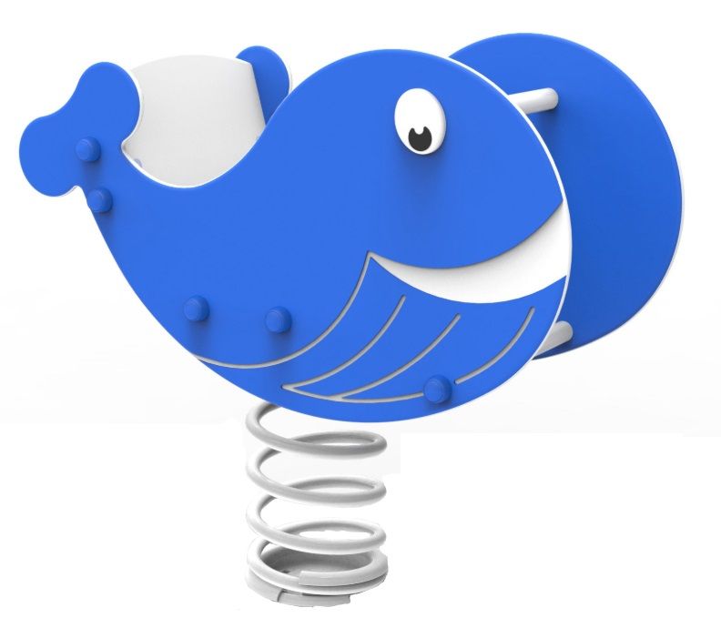 Oblíbené dětské pružinové houpadlo - VELRYBA. Výška pádu do 1 m, jako dopadová plocha postačí trávník. Více informací