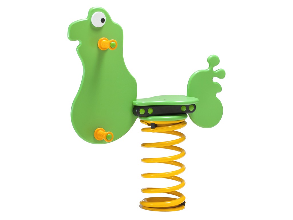 Oblíbené dětské pružinové houpadlo - ŽÁBA. Výška pádu do 1 m, jako dopadová plocha postačí trávník. Více informací