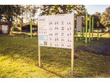 Informační tabule s provozním a cvičebním plánem pro workout. Více informací