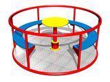 Kolotoč na sezení KON0001K (průměr 1,25 m) - celokovový s protiskluzovou podlahou, otočným středem a sedáky z HDPE. Výška pádu do 1 m, jako dopadová plocha postačí trávník. Více informací