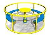 Kolotoč na sezení KON0002K (průměr 1,45 m) - celokovový s protiskluzovou podlahou, otočným středem a sedáky z HDPE. Výška pádu do 1 m, jako dopadová plocha postačí trávník. Více informací