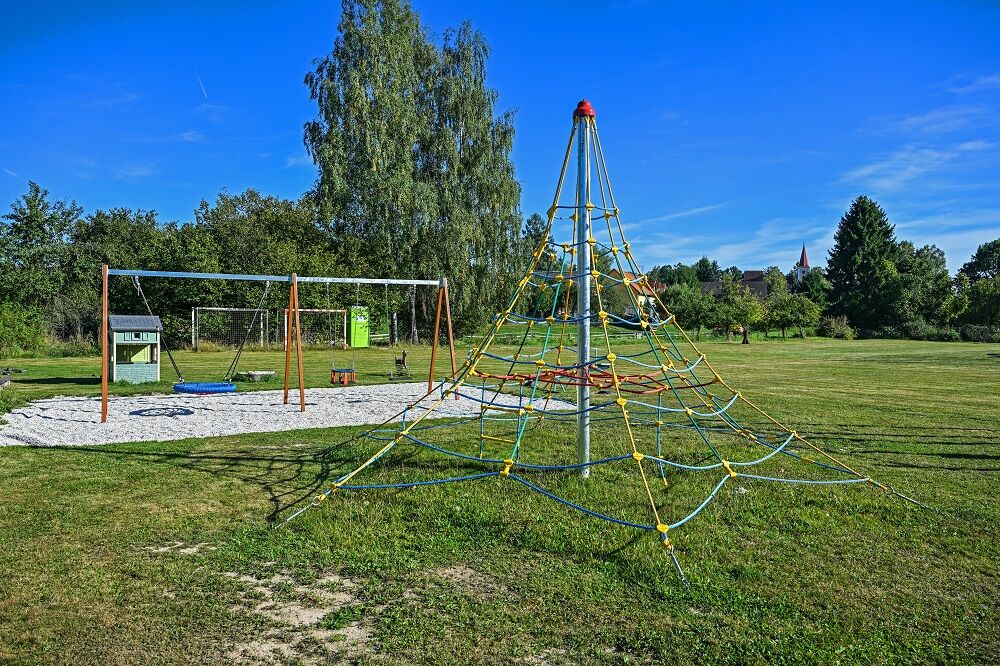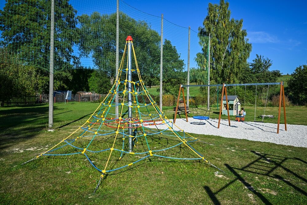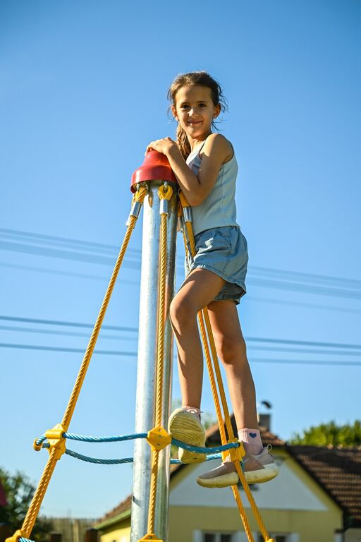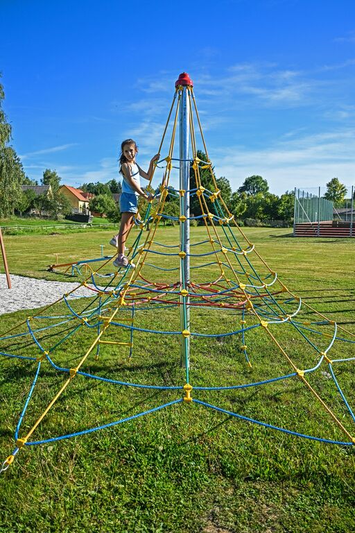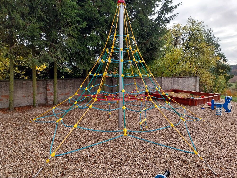 Lanová pyramida - výška 3,5 m, výška pádu 1 m jako dopadová plocha postačí tráva. Více informací
