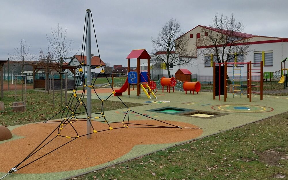 Lanová pyramida - výška 3.5 m, výška pádu 1 m, jako dopadová plocha postačí tráva. Více informací