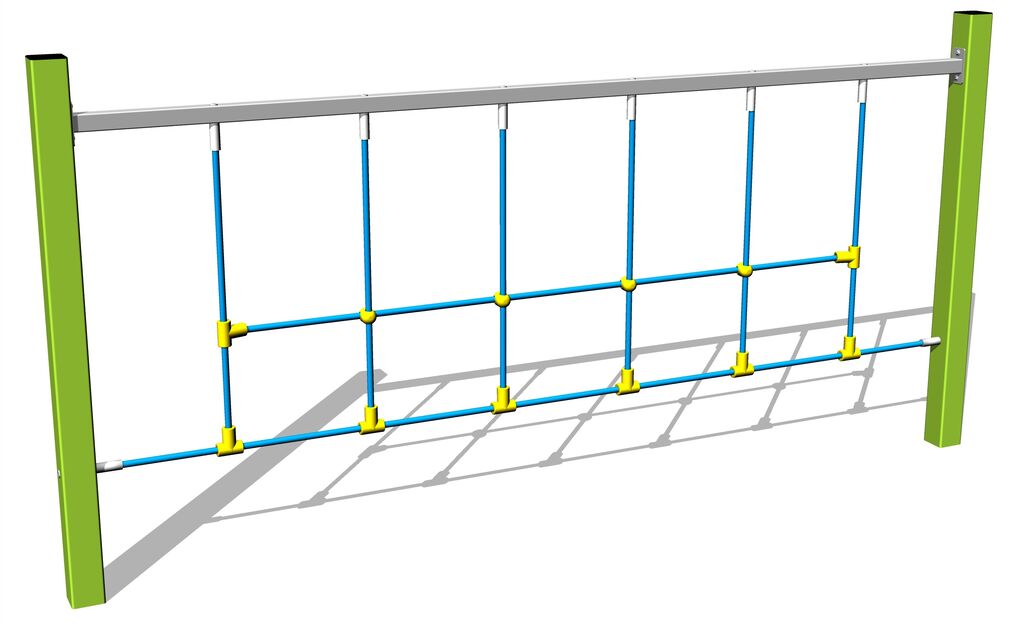 Opičí dráha -celokovová, výška pádu do 1 m, jako dopadová plocha postačí trávník. Na výběr jsou čtyři barevné varianty konstrukce: modrá, červená, hnědá a limetková. Více informací