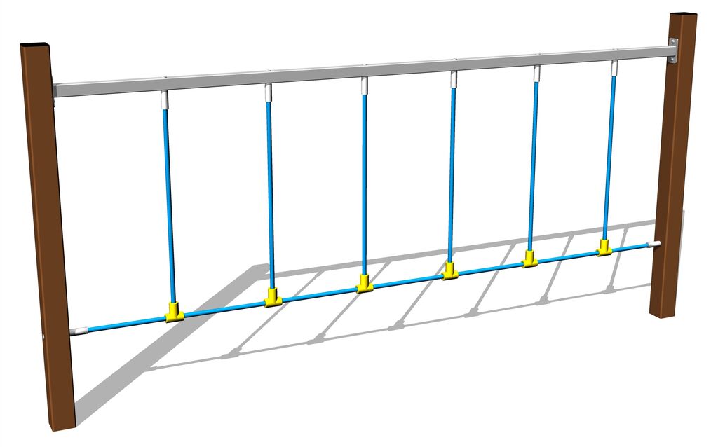 Opičí dráha - celokovová, výška pádu do 1 m, jako dopadová plocha postačí trávník. Na výběr jsou čtyři barevné varianty konstrukce: modrá, červená, hnědá a limetková. Více informací