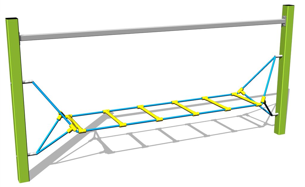 Opičí dráha - celokovová, výška pádu do 1 m, jako dopadová plocha postačí trávník. Na výběr jsou čtyři barevné varianty konstrukce: modrá, červená, hnědá a limetková. Více informací