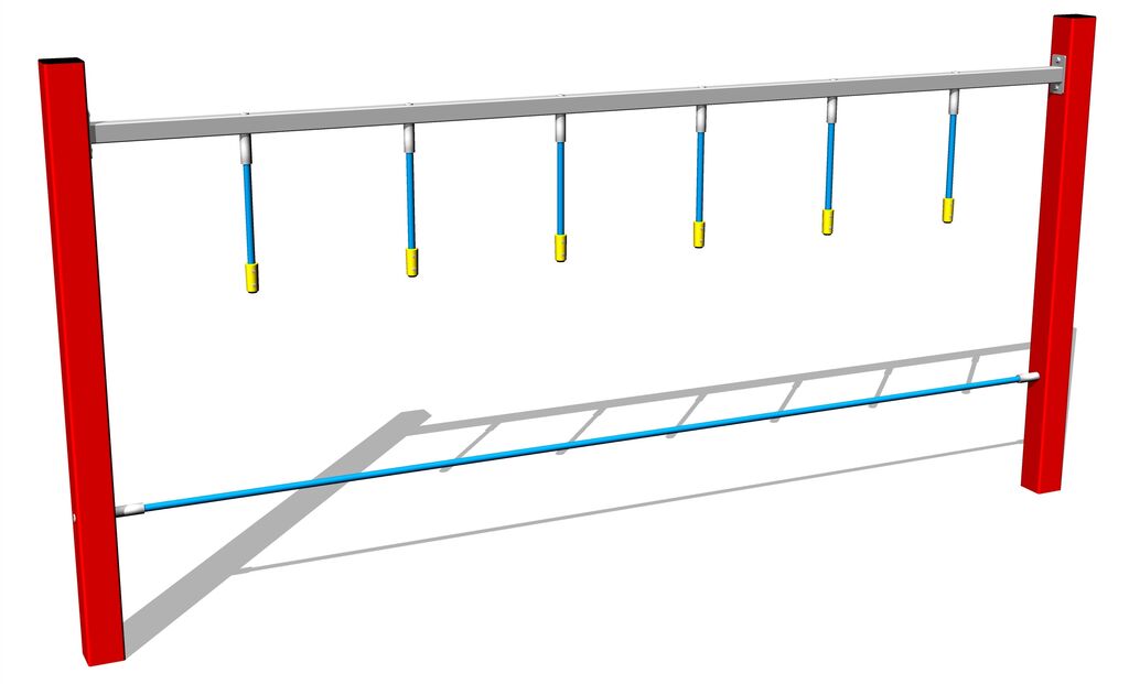 Opičí dráha - celokovová, výška pádu do 1 m, jako dopadová plocha postačí trávník. Na výběr jsou čtyři barevné varianty konstrukce: modrá, červená, hnědá a limetková. Více informací