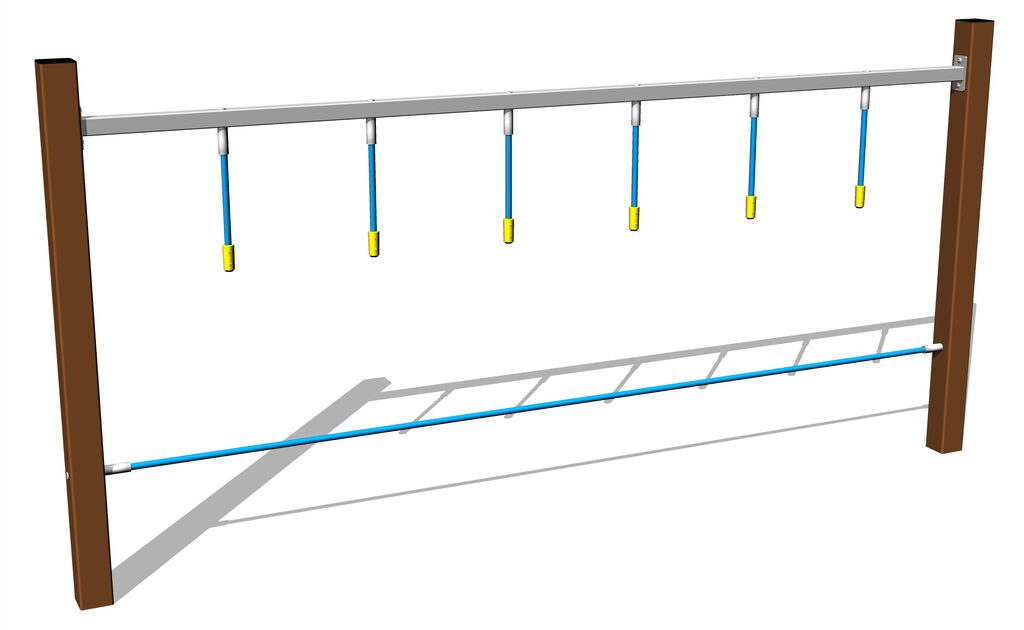 Opičí dráha - celokovová, výška pádu do 1 m, jako dopadová plocha postačí trávník. Na výběr jsou čtyři barevné varianty konstrukce: modrá, červená, hnědá a limetková. Více informací