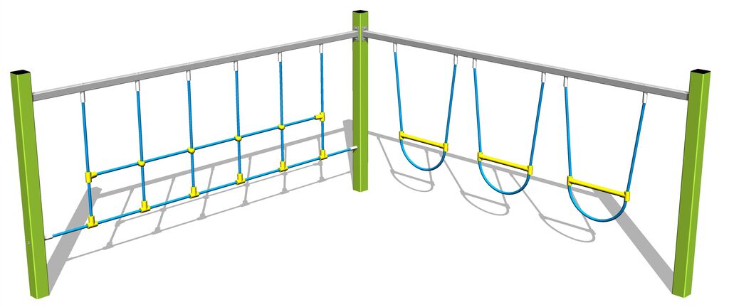 Opičí dráha - celokovová, výška pádu do 1 m, jako dopadová plocha postačí trávník. Na výběr jsou čtyři barevné varianty konstrukce: modrá, červená, hnědá a limetková. Více informací