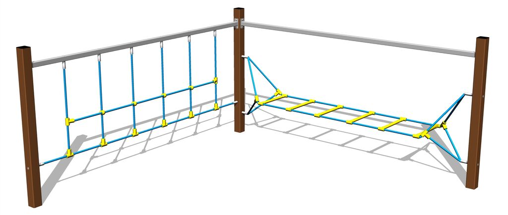 Opičí dráha - celokovová, výška pádu do 1 m, jako dopadová plocha postačí trávník. Na výběr jsou čtyři barevné varianty konstrukce: modrá, červená, hnědá a limetková. Více informací