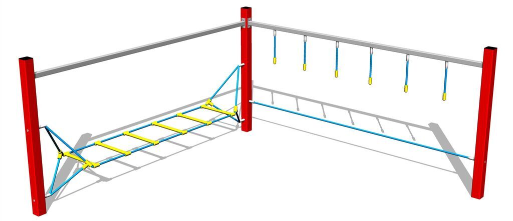 Opičí dráha - celokovová, výška pádu do 1 m, jako dopadová plocha postačí trávník. Na výběr jsou čtyři barevné varianty konstrukce: modrá, červená, hnědá a limetková. Více informací
