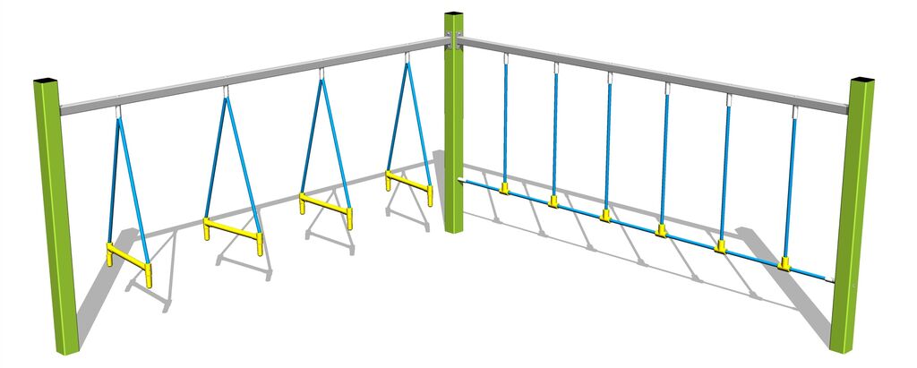 Opičí dráha - celokovová, výška pádu do 1 m, jako dopadová plocha postačí trávník. Na výběr jsou čtyři barevné varianty konstrukce: modrá, červená, hnědá a limetková. Více informací