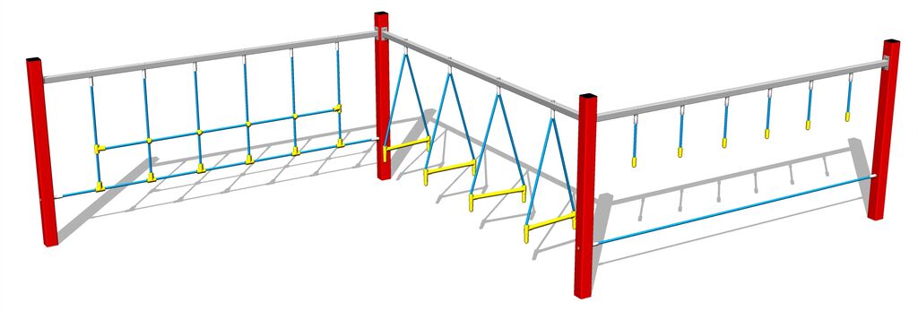 Opičí dráha - celokovová, výška pádu do 1 m, jako dopadová plocha postačí trávník. Na výběr jsou čtyři barevné varianty konstrukce: modrá, červená, hnědá a limetková. Více informací