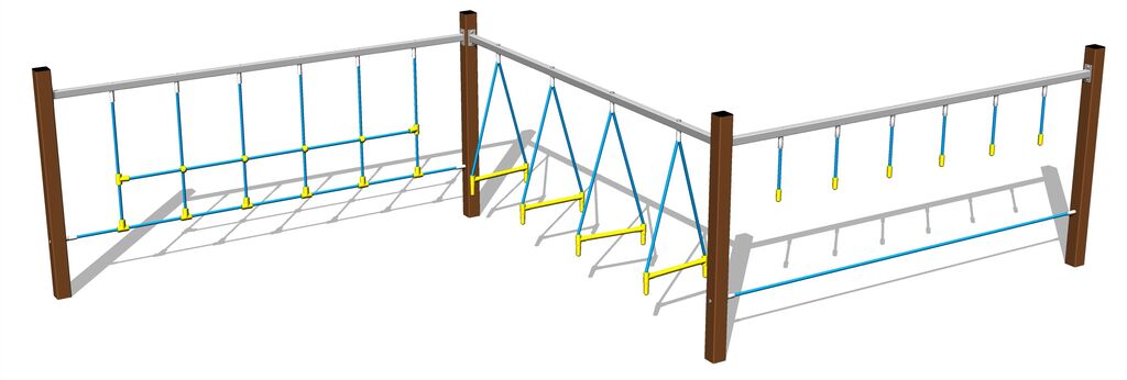 Opičí dráha - celokovová, výška pádu do 1 m, jako dopadová plocha postačí trávník. Na výběr jsou čtyři barevné varianty konstrukce: modrá, červená, hnědá a limetková. Více informací