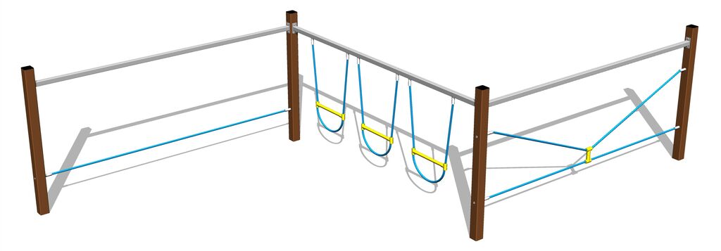 Opičí dráha - celokovová, výška pádu do 1 m, jako dopadová plocha postačí trávník. Na výběr jsou čtyři barevné varianty konstrukce: modrá, červená, hnědá a limetková. Více informací