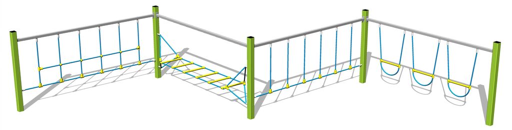 Opičí dráha - celokovová, výška pádu do 1 m, jako dopadová plocha postačí trávník. Na výběr jsou čtyři barevné varianty konstrukce: modrá, červená, hnědá a limetková. Více informací