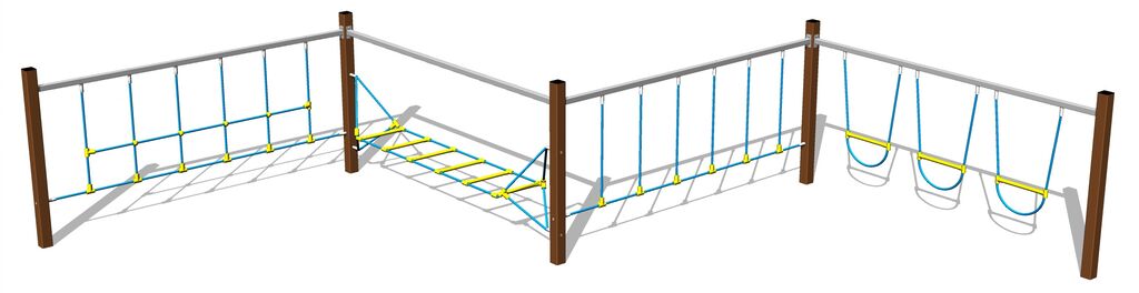 Opičí dráha - celokovová, výška pádu do 1 m, jako dopadová plocha postačí trávník. Na výběr jsou čtyři barevné varianty konstrukce: modrá, červená, hnědá a limetková. Více informací
