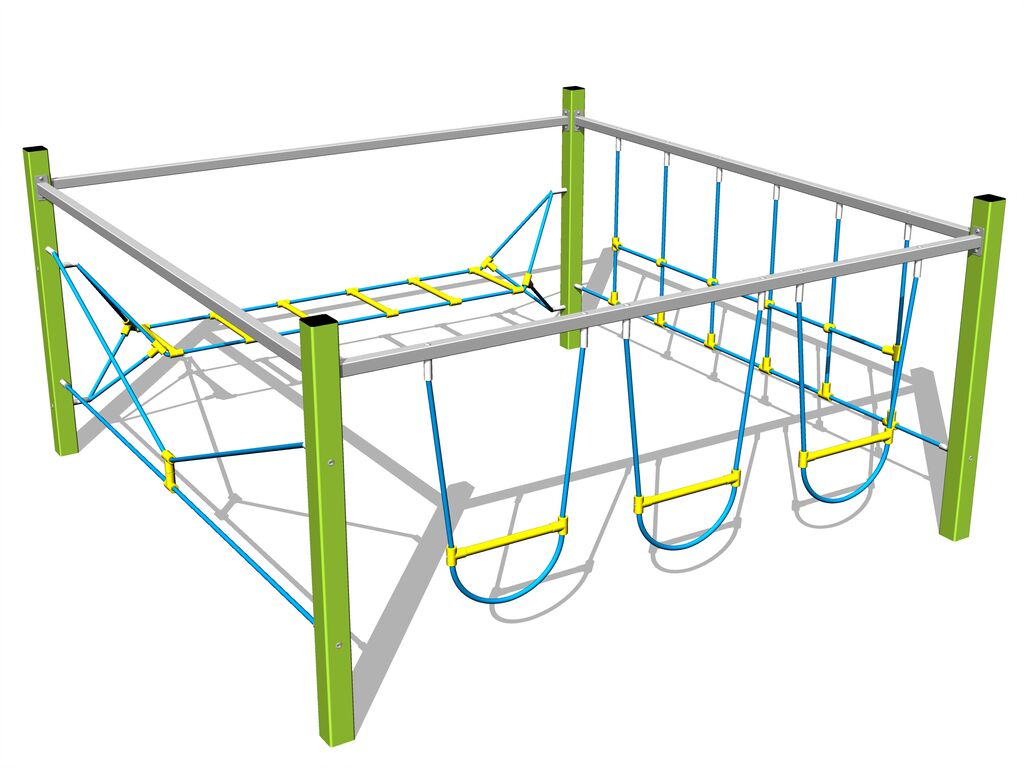Opičí dráha - celokovová, výška pádu do 1 m, jako dopadová plocha postačí trávník. Na výběr jsou čtyři barevné varianty konstrukce: modrá, červená, hnědá a limetková. Více informací
