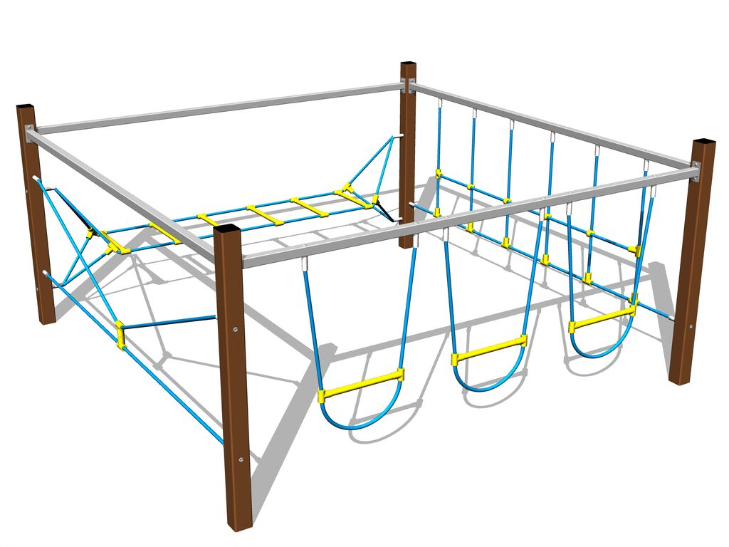 Opičí dráha - celokovová, výška pádu do 1 m, jako dopadová plocha postačí trávník. Na výběr jsou čtyři barevné varianty konstrukce: modrá, červená, hnědá a limetková. Více informací