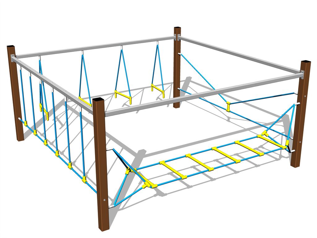 Opičí dráha - celokovová, výška pádu do 1 m, jako dopadová plocha postačí trávník. Na výběr jsou čtyři barevné varianty konstrukce: modrá, červená, hnědá a limetková. Více informací