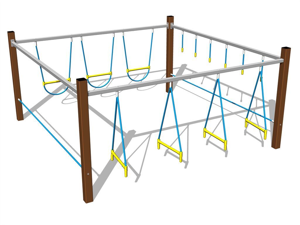 Opičí dráha - celokovová, výška pádu do 1 m, jako dopadová plocha postačí trávník. Na výběr jsou čtyři barevné varianty konstrukce: modrá, červená, hnědá a limetková. Více informací