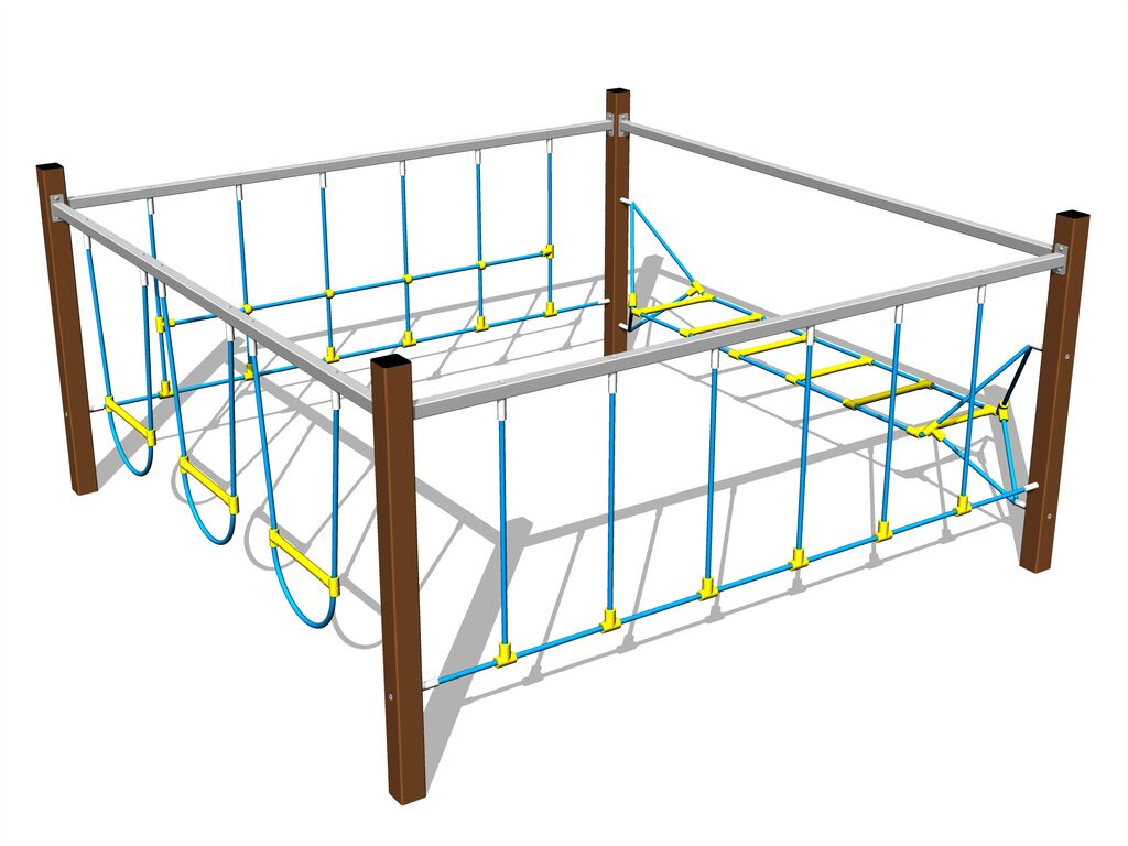 Opičí dráha - celokovová, výška pádu do 1 m, jako dopadová plocha postačí trávník. Na výběr jsou čtyři barevné varianty konstrukce: modrá, červená, hnědá a limetková. Více informací