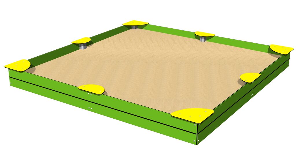Pískoviště je vyrobeno z vysoce kvalitního plastu HDPE (vysokotlaký, celoprobarvený polyetylen, který se vyznačuje vysokou barevnou stálostí, odolností proti UV záření a hlavně bezpečností, protože je nelámavý a nehrozí tak žádné nebezpečí zranění dětí ostrými úlomky). Veškeré další kovové prvky jsou také upravovány zinkováním anebo duplexním nástřikem práškovou vypalovací barvou dle RAL. Veškerý spojovací materiál je pozinkovaný nebo nerezový.