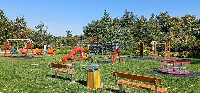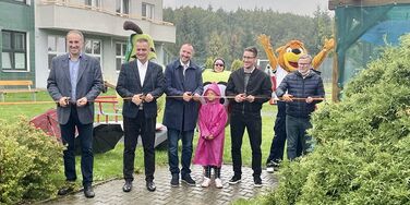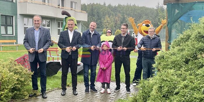 Slavnostní otevření dětského hřiště k světovému dni DMO (dětské mozkové obrny) v Sanatoria Klimkovice. Najdete zde kolotoč, šplhací sestavu, vahadlovou houpačku, průlezku v podobě požárního auta, domečku a pejska, řetězovou houpačku Hnízdo, řetězovou dvojhoupačku, řetězovou dvojhoupačku se skluzavkou, houpadla na pružině Koníka a auta a dvě trampolíny do země. Hřiště je doplněno o městský mobiliář lavičky a odpadkové koše.