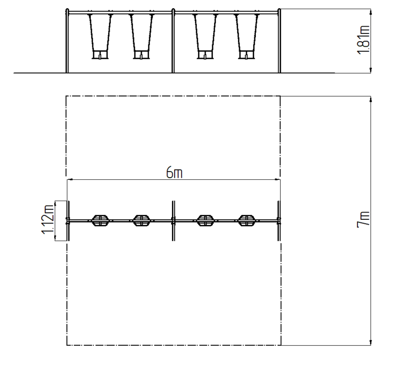 Nosná konstrukce čtyřhoupačky je vyrobena z konstrukční oceli, která je proti korozi chráněna povrchovou úpravou zinkováním, čímž se docílí velmi výrazného prodloužení životnosti herního prvku nebo duplexním nástřikem práškovou vypalovací barvou dle RAL. Tyto konstrukce jsou uloženy do betonového lože. Veškeré další kovové prvky jsou také upravovány zinkováním nebo duplexním nástřikem práškovou vypalovací barvou dle RAL.